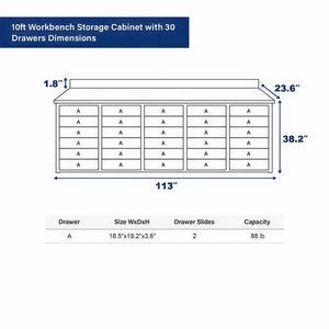 | Workbench Top Size (LxW): | 113 x 23.6 inch |