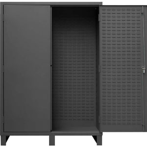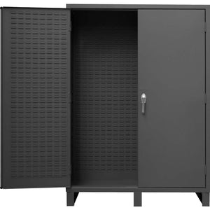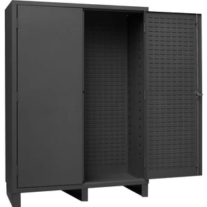 Crafted from heavy-duty, all-welded 14-gauge steel, our cabinet stands as a stalwart guardian for your larger and bulkier items. Its expansive interior provides ample space, ensuring the secure storage of sizable items. Reinforcing this robust design, full-height welded piano hinges enhance door strength and rigidity. The 3-point locking system, bolstered by 5/16-inch rods and a pad-lockable handle (padlock not provided), guarantees unmatched security. In addition, fully welded louvered panels not only fortify the doors but also offer a versatile storage solution with the capacity to hold Hook-On Bins. Discover a resilient storage companion that melds strength and versatility seamlessly.