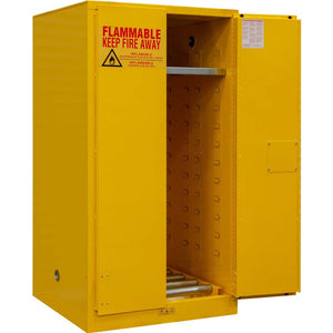 Ensure the safety of your workspace with our FM Approved Flammable Storage Cabinet, designed to handle 55 gallons of hazardous materials. This robust cabinet features 2 doors and a manual close mechanism, providing secure containment. The inclusion of 1 shelf enhances your storage options while maintaining organization. Colored in vibrant safety yellow, this cabinet serves as a clear visual reminder of its purpose. Prioritize safety and compliance in your workplace with our reliable and efficient flammable storage solution.