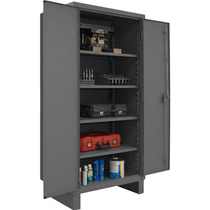 With a 6-inch height base/legs granting forklift accessibility, and pre-drilled holes for floor lagging crafted from 3/16-inch steel, this cabinet seamlessly combines functionality and durability.