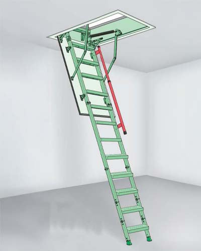| Handrail: | Telescopic handrail with mechanism to support folding and unfolding the ladder |