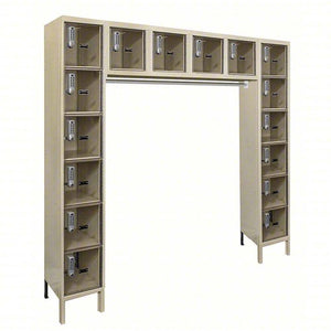 Enhance your storage capabilities with the Hallowell DigiTech 72" x 18" x 78" tan 16-person locker. Crafted from a full body of welded sheet steel featuring double flanged connections and single return bends on all sides, this locker ensures sturdy and reliable construction. Coated with a high-grade powder, skillfully sprayed, and baked at 350 degrees Fahrenheit, the finish provides a durable protective layer, ensuring longevity and resilience. The inclusion of 6" feet comes standard, elevating the unit and safeguarding its contents from dirt and potentially harmful cleaning chemicals.
