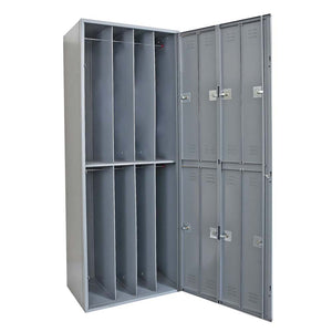 Constructed with 24 gauge body featuring perforated backs for optimal ventilation, galvannealed bottoms for durability, and galvannealed master door frames for enhanced strength, these lockers are built to withstand the test of time.