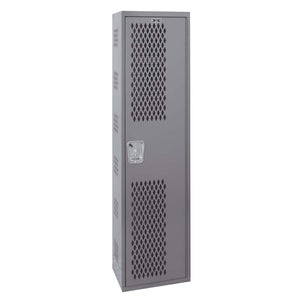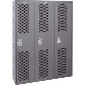 Presenting Hallowell's Single-Point Ventilated Single-Tier Three-Wide Lockers, engineered with remarkable durability and backed by an impressive lifetime warranty for added peace of mind. These lockers boast an all-welded steel construction with a 16-gauge steel body, ensuring robustness and longevity. The secure 14-gauge steel door is skillfully attached using a continuous piano hinge, guaranteeing smooth and reliable operation. To maintain optimal air circulation within the locker, the door features a diamond-perforated pattern, while the built-in door stiffener reduces excessive noise when doors are closed, ensuring a quieter locker environment.