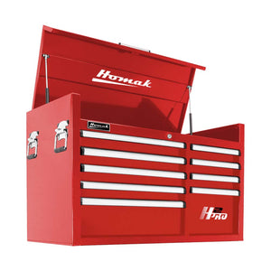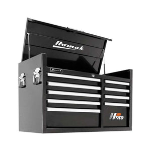 Maintain order in your industrial workspace with the Homak H2Pro 41" 9-drawer top chest! Designed for use atop a Homak H2Pro 41" roller cabinet, this chest seamlessly expands your storage capacity. Crafted for enduring use, its robust 16-gauge steel body is fortified with a powder-coated, UV-resistant finish. Housing 9 drawers, this unit ensures your tools and supplies are organized and easily accessible, with the added security of a lockable top drawer.