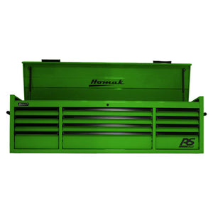 Efficiently organize your tools and hardware with the Homak 72" RS Pro 12-drawer top chest. Featuring a dozen drawers, this top chest allows flexible organization, ensuring that every tool has its dedicated space. The inclusion of PVC foam liners in the drawers provides added protection, keeping stored contents safe and the drawer interior clean. Additionally, the top till incorporates power outlets, offering practical convenience by allowing you to connect your electric equipment directly to the chest. This combination of versatile storage and convenient power access makes the Homak 72" RS Pro 12-drawer top chest a reliable and functional addition to your workspace.
