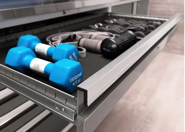 Single-key lock secures all drawers |