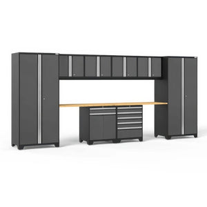 | Included Pieces (10): | 2 multi-use lockers, 4 wall cabinets, 1 five-drawer base, 1 multi-function base, 2 bamboo worktops |