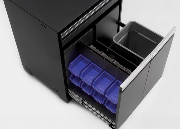 | Cabinet Type: | Multi-Functional base cabinet (tool drawer + parts organizer drawer + waste/recycling drawer) |