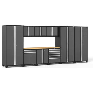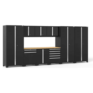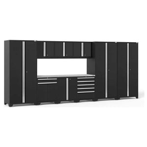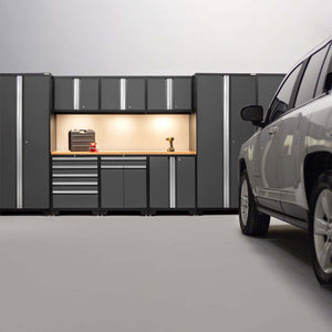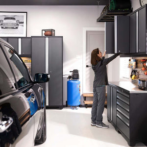 Revitalize your garage organization with the Pro 3.0 Series 10-Piece metal garage cabinet set from NewAge Products. Our customers rave about these stylish and functional cabinet sets, constructed from durable 18-gauge steel with a generous 24" depth. Best of all, they come ready-built, minimizing the assembly process.
