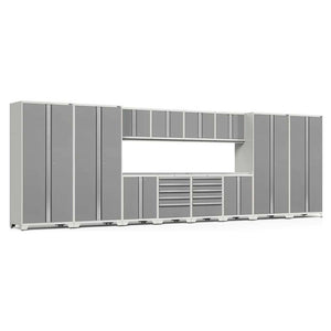 Revitalize your garage organization with the Pro 3.0 Series 14-Piece metal garage cabinet set from NewAge Products. This comprehensive set offers an exceptional solution for your storage needs. Crafted from 18-gauge steel with a sleek 24" depth, these cabinet sets are designed to impress and require minimal assembly.
