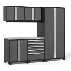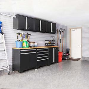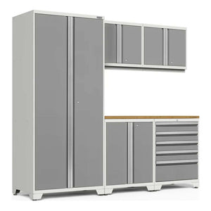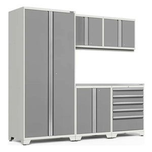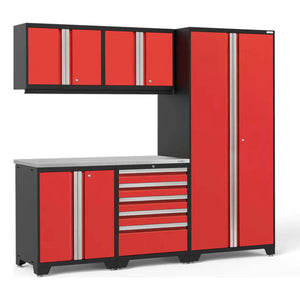 Experience the unmatched organization of NewAge Products' Pro 3.0 Series 6-Piece metal garage cabinet set. Delight in the exceptional quality and functionality of these meticulously crafted garage cabinets. Our customers rave about these stunning 24" deep, 18-gauge steel cabinet sets, designed to elevate your garage storage.