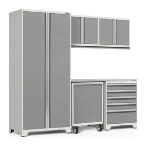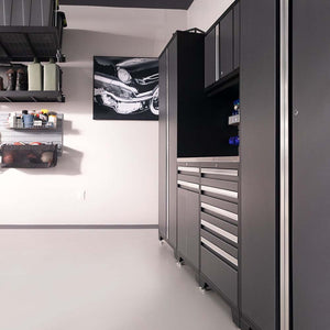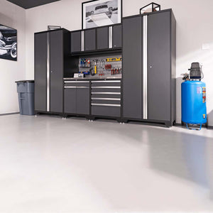 Revamp your garage organization effortlessly with the Pro 3.0 Series 6-Piece metal garage cabinet set from NewAge Products. Our valued customers are thrilled by the stylish appearance and functionality of these ready-built, 24" deep, 18-gauge steel garage cabinets. Enjoy the convenience of minimal assembly while optimizing your storage space.