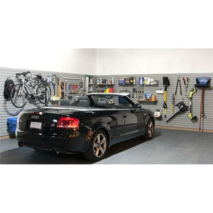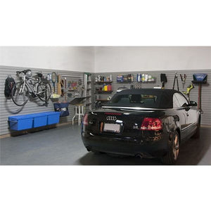 Tired of your garage being the most disorganized space in your house? Need a work space with lighting? Don’t worry, the Premium Garage Package is the solution for you! With 200 square feet of Heavy Duty wall panels and nearly 60 accessories you will quickly have your tools, garden equipment, sports equipment and holiday decorations organized!