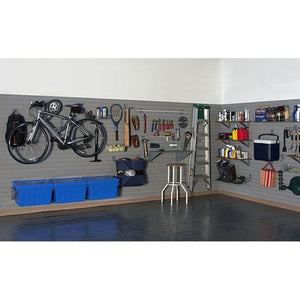 Premium Garage Package includes: 5 cases – 8′ Heavy Duty wall panels (4 panels/case) 40 – InstallStrips* 13 – Single Hooks 1 – 15″ Bike Bracket Set 3 – Heavy Duty Storage and Recycle Totes 4 – 15″ Heavy Duty Brackets 1 – Heavy Duty ‘S’ Hook 2 – Large Bins 2 – 12″ Universal Hooks 1 – 24″ Grab & Go Bag 2 – Heavy Duty Universal Hooks 3 – Universal Hooks 1 – 4′ Tube Light 1 – 24″ Magnetic Tool Bar 1 – 16″ Tool Organizer 1 – Slot Bin 1 – 30″ Metal Shelf 1 – Power Strip Set with Bracket 1 – Pocket Light Set with Square Loop Hook 1 – Small Angle Basket 4 – Bamboo Shelf Assemblies with Brackets 1 – Angle Shelf 2 – Small Wire Shelves 1 – Six Prong Hook 1 – Long Hook 1 – Heavy Duty Utility Hook 1 – 5″ Single Hook 2 – Heavy Duty Tool Hooks 2 – Heavy Duty Box Hooks 1 – Heavy Duty Cradle Hook 2 – Cradle Hooks**Obtain qty 600 #6 sized screws from your local hardware store