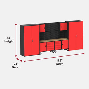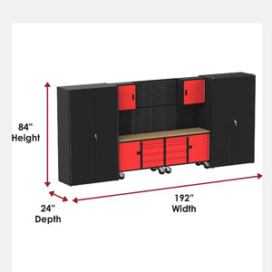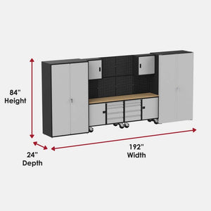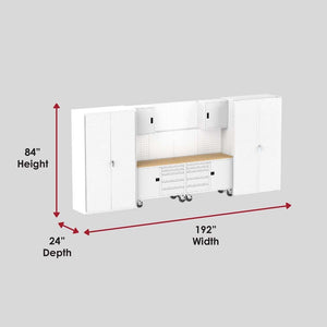 The preconfigured garage/workshop Suite F from Collector's Edition Garage is the largest, most flexible solution for organizing and personalizing your workspace. Designed to fit an 16' wall, this suite measures 192" wide x 21" deep x 84" tall when installed as recommended.